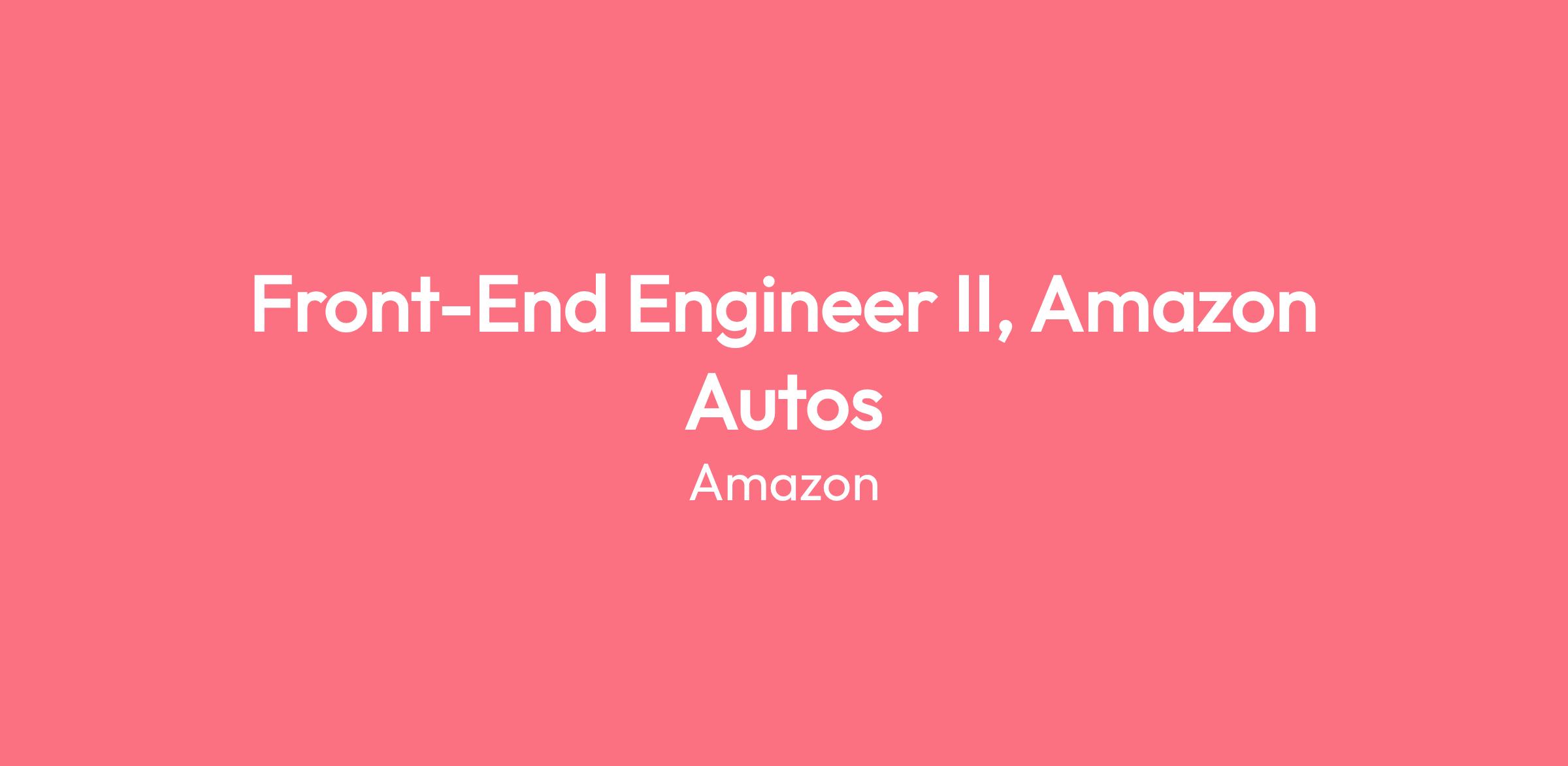 Interested in building something new? Join the Amazon Autos team on an exhilarating journey to redefine the vehicle shopping experience. This is an opportunity to be part of the Amazon's new business ventures. Our goal is to create innovative automotive discovery and shopping experiences on Amazon, providing customers with greater convenience and a wider selection. You'll work in a creative, fast-paced, and entrepreneurial environment at the center of Amazon's innovation.We're looking for a talented Front-End Engineer to lead UI development, collaborate with product managers, UX designers, UX researchers , Data Scientists to design, develop, and test innovative automotive-shopping experiences for our customers. You will enjoy a fast-paced environment where you can obsess over customers by creating intuitive customer journey in amazon.com and mobile apps.