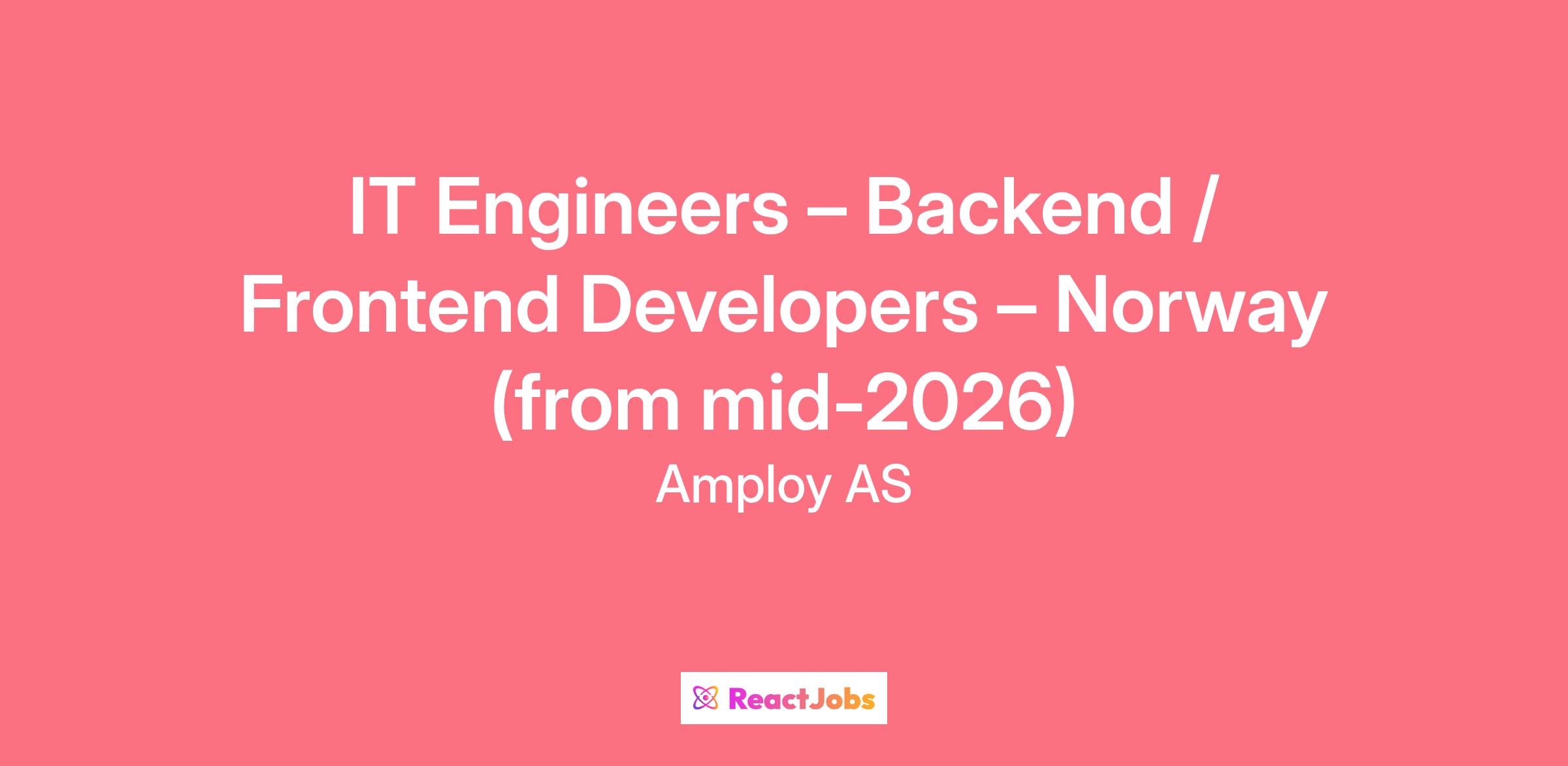 We are seeking passionate Backend and Frontend Developers to join innovative start-ups and scale-ups across Norway from mid-2026 onwards.