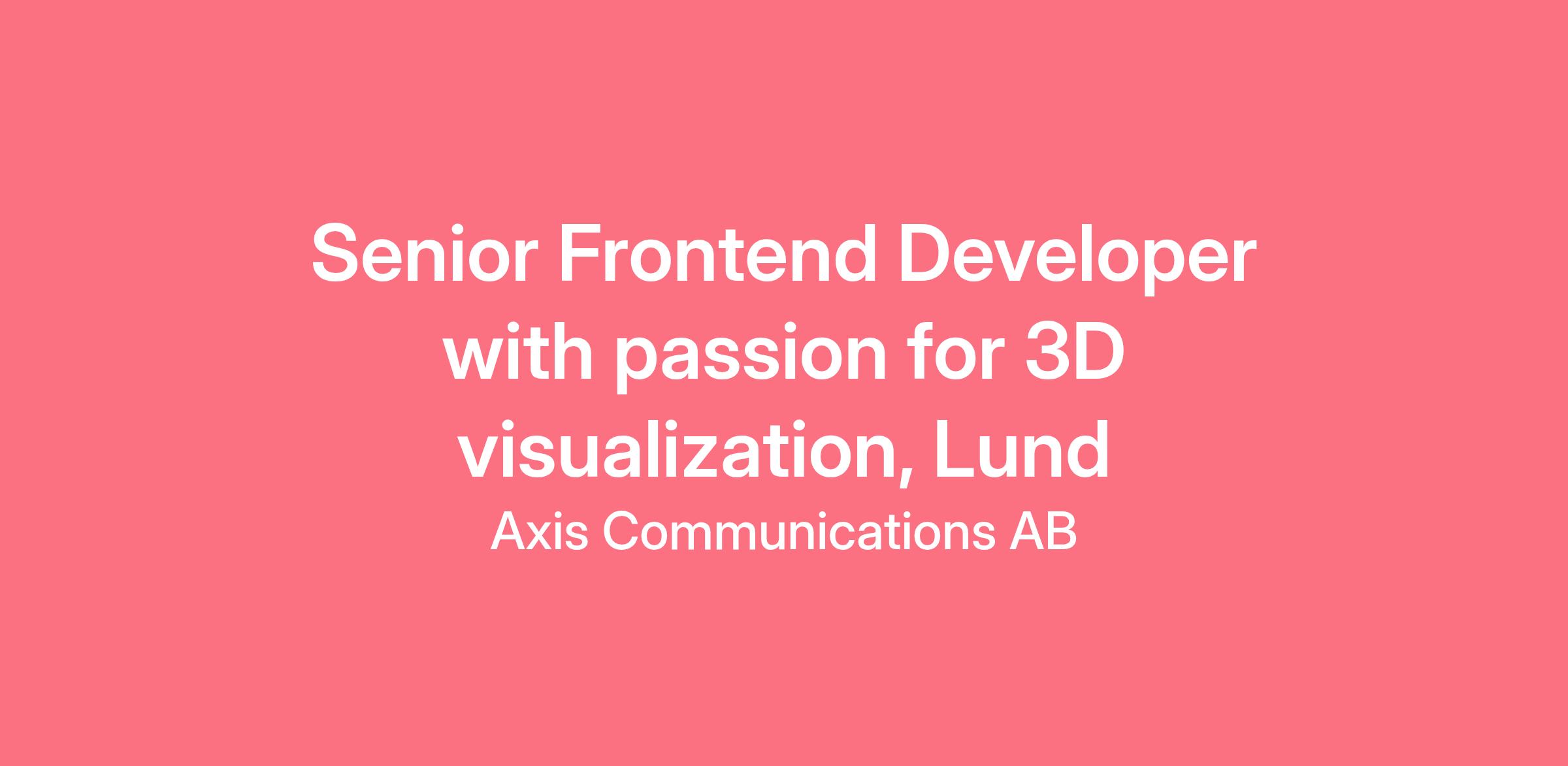 We're looking for a Senior Frontend developer with strong skills in 3D visualization and rendering. You will, together with your team members, develop and enhance the 3D planning capabilities of AXIS Site Designer – helping users visualize camera placement, coverage areas, and scene layouts in immersive 3D environments. You'll work on translating complex surveillance system requirements into intuitive visual experiences. You'll help refine architecture, improve developer experience (CI/CD, tooling, fast feedback loops) and ensure a robust, high-performance codebase that delivers smooth 3D rendering experiences in the browser.